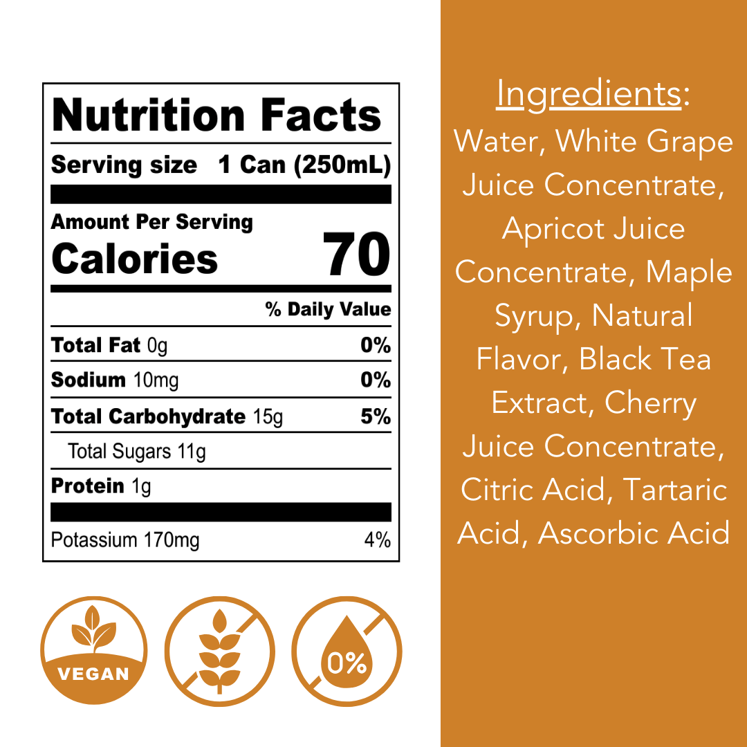 Water, White Grape Juice Concentrate, Apricot Juice Concentrate, Maple Syrup, Natural Flavor, Black Tea Extract, Cherry Juice Concentrate, Citric Acid, Tartaric Acid, Ascorbic Acid